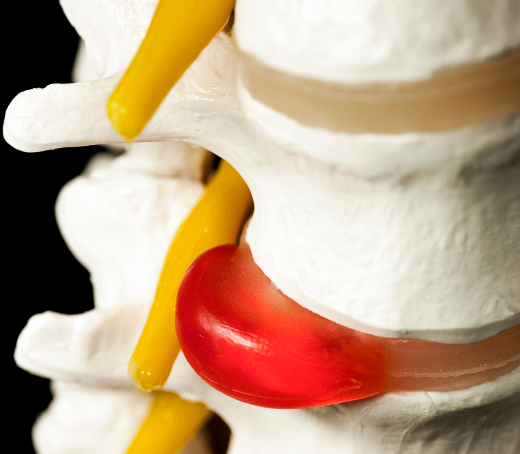 - Disc herniation – Part of the disc pushes out and presses on a nerve root.