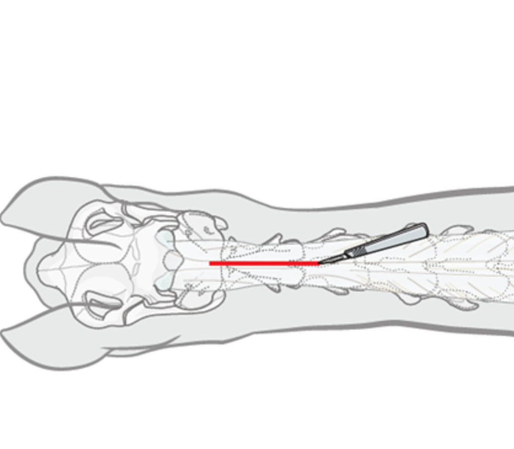The ligamentum flavum can harden into bone and press on the spinal cord in the mid-back (thoracic spine). A dorsal laminectomy removes the pressure, often restoring walking ability. Outcomes show significant neurological improvement.